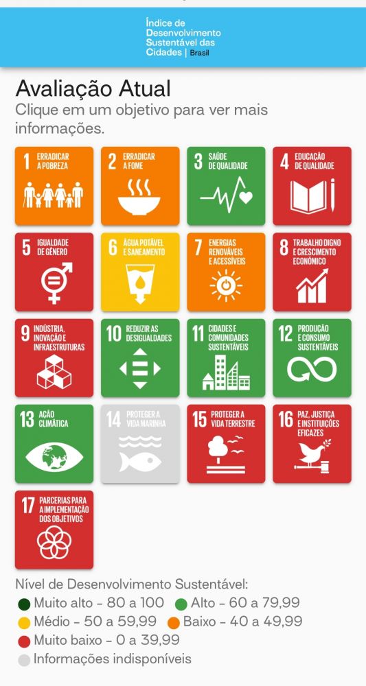 O IDSC permite uma visão abrangente e integrada das cidades brasileiras diante dos 17 Objetivos de Desenvolvimento Sustentável (ODS), estabelecidos pela ONU em 2015, com metas para os países cumprirem até 2030.