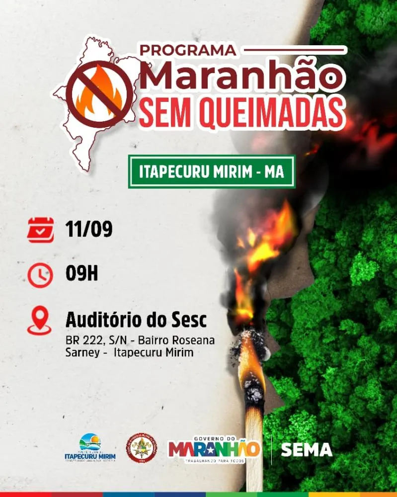O Governo do Estado, através da Secretaria de Estado do Meio Ambiente, realiza na manhã desta quinta-feira (11), em Itapecuru Mirim, o evento Maranhão Sem Queimadas.