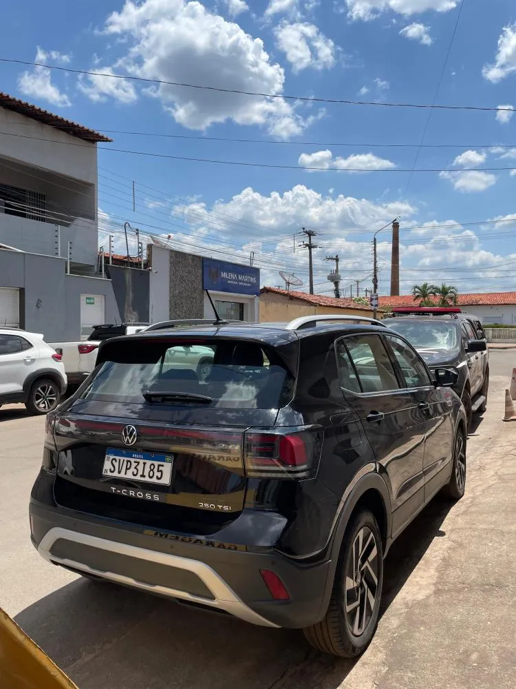 Automóveis apreendidos, um Volkswagen modelo T-Cross 250 TSI, cor preta de placa SVP3185, e uma caminhonete Hilux da marca Toyota, cabine dupla, de cor branca e placa RXDOE45.